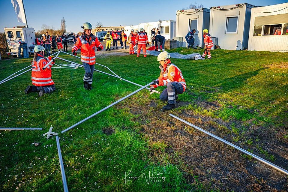 Mit drei Hund-Mensch-Teams und zwei Helfenden reiste die Hamburger Staffel am Freitag an. Nach dem Zeltaufbau wurde die Gruppeneinteilung vorgenommen, und ab 19 Uhr startete ein 24-Stunden-Einsatzszenario – mit wechselnden Gruppenleitern, wenig Pausen und maximal zwei Stunden Schlaf in der ersten Nacht. Unterschiedlichste Einsätze forderten die Ehrenamtlichen in Leersuchen, längeren Suchen und unter Stressbedingungen. Parallel dazu wurden die Einsatzkräfte aus verschiedensten Perspektiven bewertet: von PSNV-Land, Rettungshundeprüfern, THW, Drohnenstaffeln und weiteren Expertinnen und Experten.