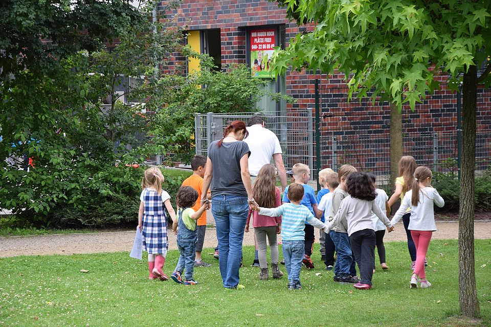 Das schrille Alarmsignal, das am Donnerstag, 30. Juni 2016, durch die Kita im Othmarschen Park hallte, sorgte bei den 66 Jungen und Mädchen für einen actionreichen Vormittag. In kürzester Zeit mussten die Kinder und Mitarbeiter am Sammelpunkt auf einer Wiese neben dem Gebäude zusammenkommen. Obwohl die Kids schnell merkten, dass es sich lediglich um eine Übung handelte, gab es anfangs bei einigen ein paar Tränen. „Dass sie erst einmal gestresst sind, ist eine ganz normale Reaktion“, erklärt Kita-Leiterin Tanja Hustedt-Hoffmann und ergänzt: „Draußen konnten wir sie aber alle wieder beruhigen, indem wir die Situation aufgelockert und ein Lied gesungen haben.“