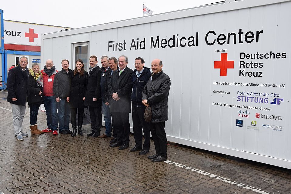 Die Container konnten dank einer Spende der Dorit und Alexander Otto Stiftung in Höhe von rund 900.000 Euro an den DRK Kreisverband Hamburg Altona und Mitte e.V., dem Betreiber der Zentralen Erstaufnahme Rugenbarg, angeschafft werden. „Die Container bedeuten einen Meilenstein in der medizinischen Erstversorgung der Flüchtlinge“, erklärt Dorit Otto, Vorstandsvorsitzende der Dorit & Alexander Otto Stiftung, und ergänzt: „In diesen effizienten Kleinpraxen kommt mit dem Dolmetschersystem eine innovative Technik zum Einsatz, die die Verständigung zwischen Arzt und Patient und damit die medizinische Diagnostik deutlich verbessert.“